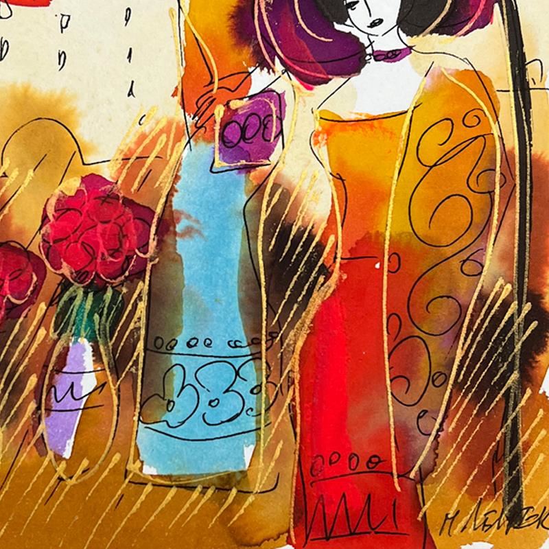 This is an original mixed media watercolor painting on paper by Moshe Leider. Hand signed by the artist, this piece comes custom framed and includes a Letter of Authenticity. Measures approximately 15" x 13.5" (frame), 8" x 6.5" (image). This item requires special handling and may have a longer than usual turnaround.