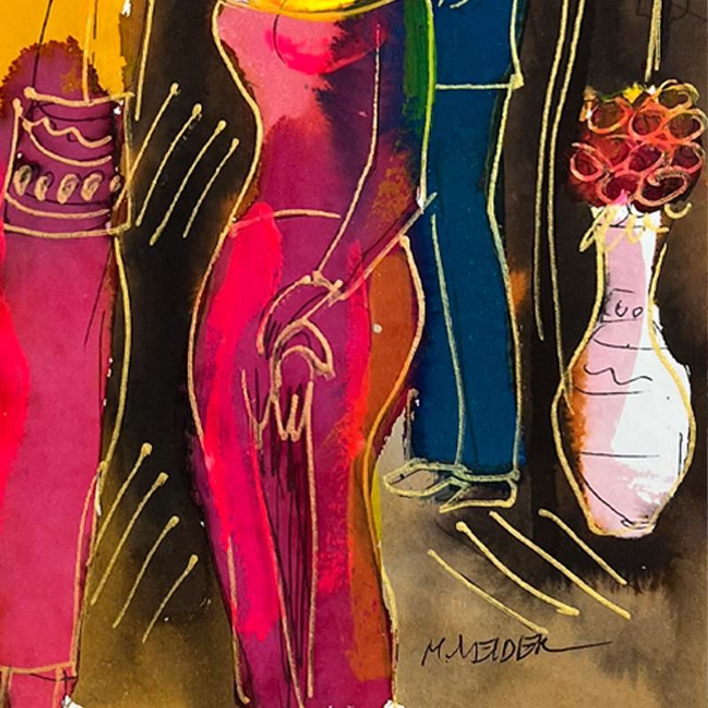 This is an original mixed media watercolor painting on paper by Moshe Leider. Hand signed by the artist, this piece comes custom framed and includes a Letter of Authenticity. Measures approximately 18.5" x 16" (frame), 12" x 8.5" (image). This item requires special handling and may have a longer than usual turnaround.