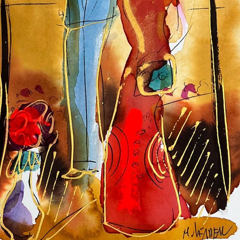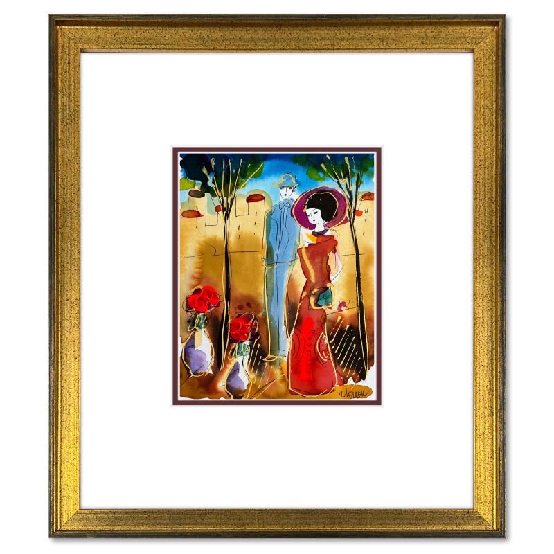 This is an original mixed media watercolor painting on paper by Moshe Leider. Hand signed by the artist, this piece comes custom framed and includes a Letter of Authenticity. Measures approximately 15" x 13.5" (frame), 8" x 6.5" (image). This item requires special handling and may have a longer than usual turnaround.