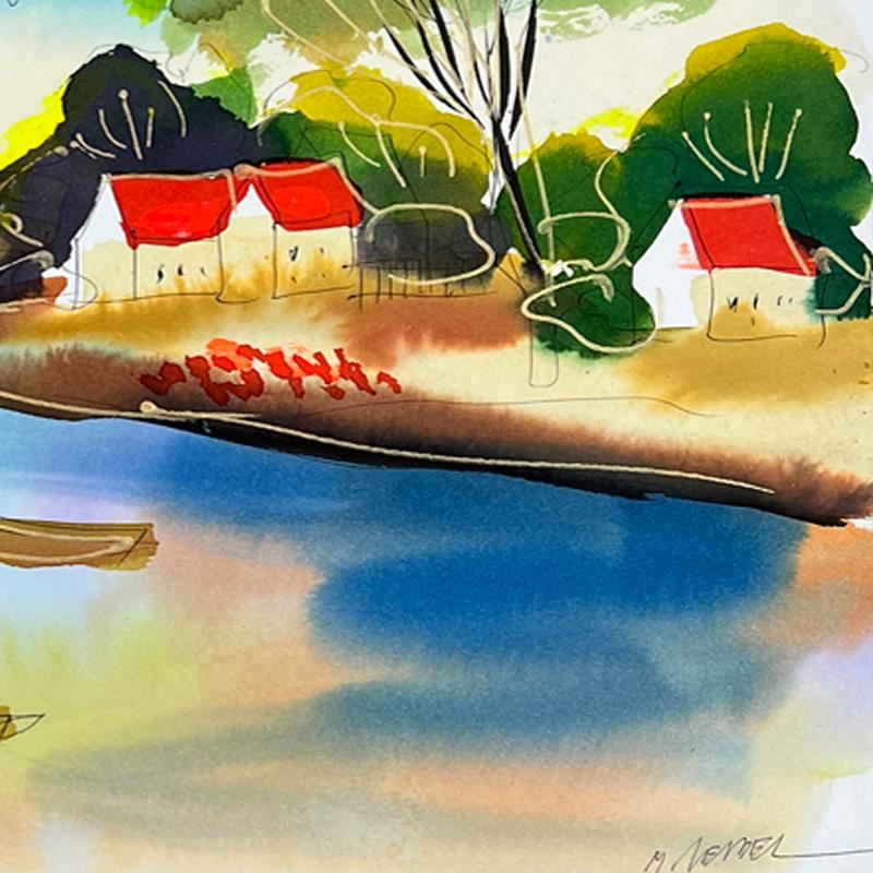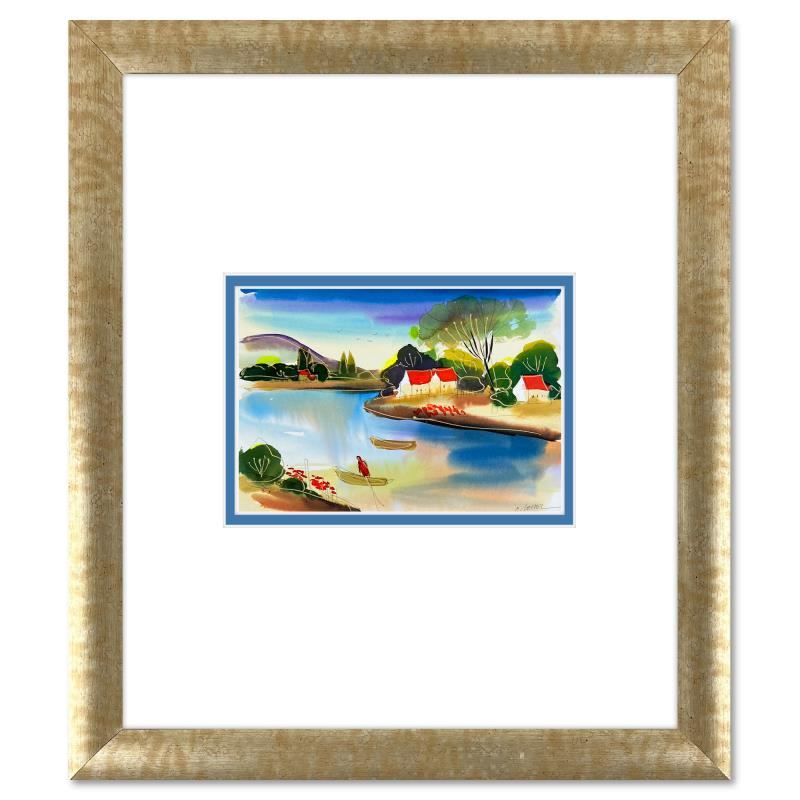 This is an original mixed media watercolor painting on paper by Moshe Leider. Hand signed by the artist, this piece comes custom framed and includes a Letter of Authenticity. Measures approximately 18.5" x 16" (frame), 9.5" x 13" (image). This item requires special handling and may have a longer than usual turnaround.