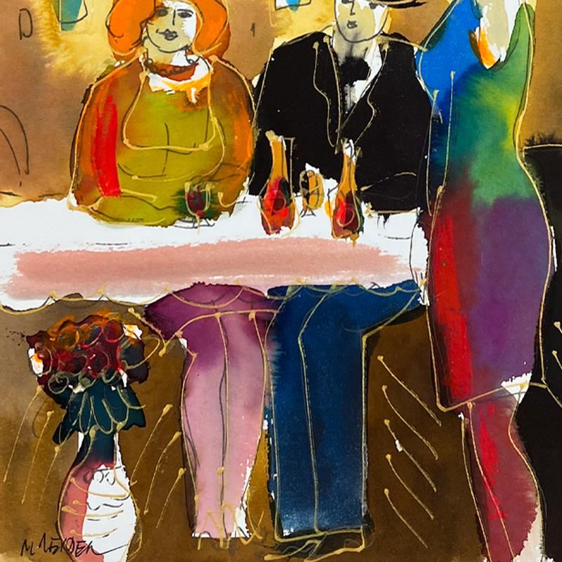 This is an original mixed media watercolor painting on paper by Moshe Leider. Hand signed by the artist, this piece comes custom framed and includes a Letter of Authenticity. Measures approximately 18.5" x 16" (frame), 11.5" x 9" (image). This item requires special handling and may have a longer than usual turnaround.