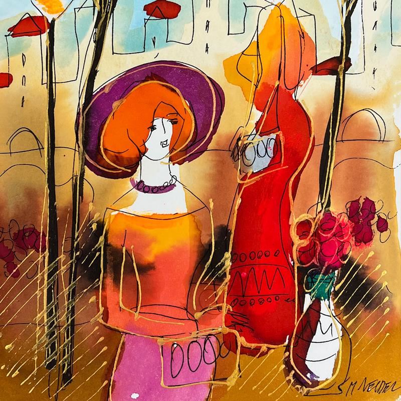 This is an original mixed media watercolor painting on paper by Moshe Leider. Hand signed by the artist, this piece comes custom framed and includes a Letter of Authenticity. Measures approximately 16" x 15" (frame), 9" x 8" (image). This item requires special handling and may have a longer than usual turnaround.