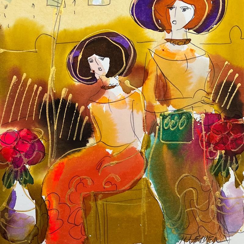 This is an original mixed media watercolor painting on paper by Moshe Leider. Hand signed by the artist, this piece comes custom framed and includes a Letter of Authenticity. Measures approximately 16" x 15" (frame), 9" x 8" (image). This item requires special handling and may have a longer than usual turnaround.