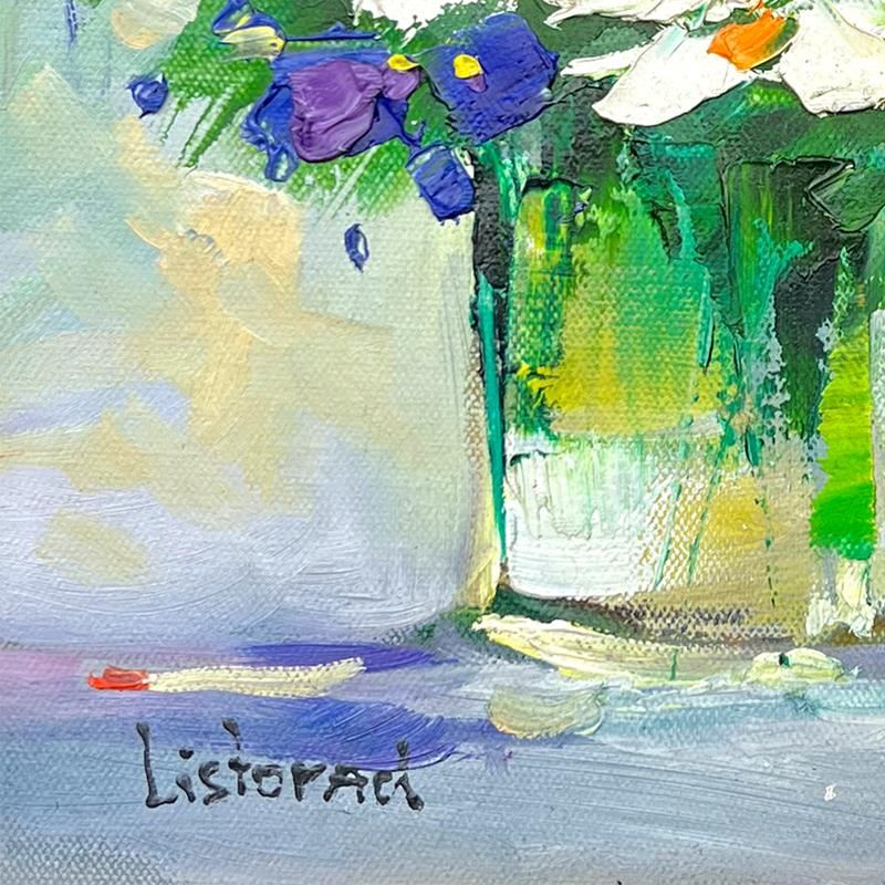 This is an untitled original painting, acrylic on canvas by Natalya Listopad. It is hand signed by the artist and comes with a letter of authenticity. Measures approximately 10" x 10" (image).