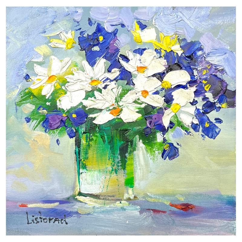 This is an untitled original painting, acrylic on canvas by Natalya Listopad. It is hand signed by the artist and comes with a letter of authenticity. Measures approximately 10" x 10" (image).