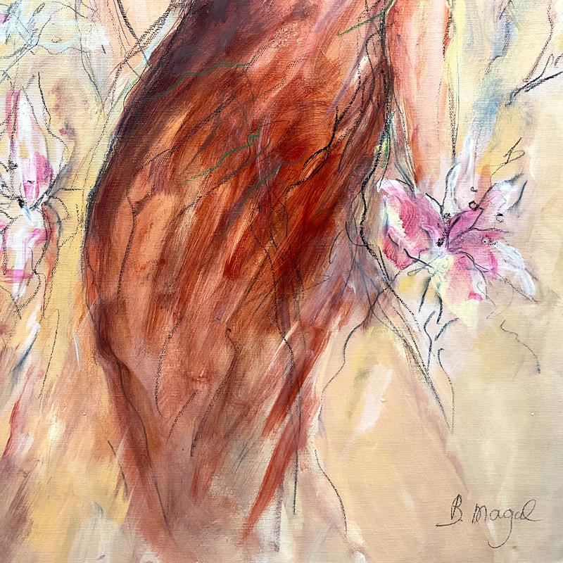 This is an original acrylic painting on canvas by Batia Magal, hand signed by the artist. Includes Letter of Authenticity. Measures approx. 43" x 21" (image).