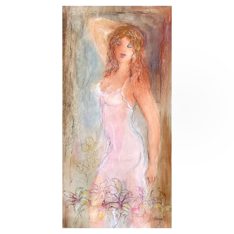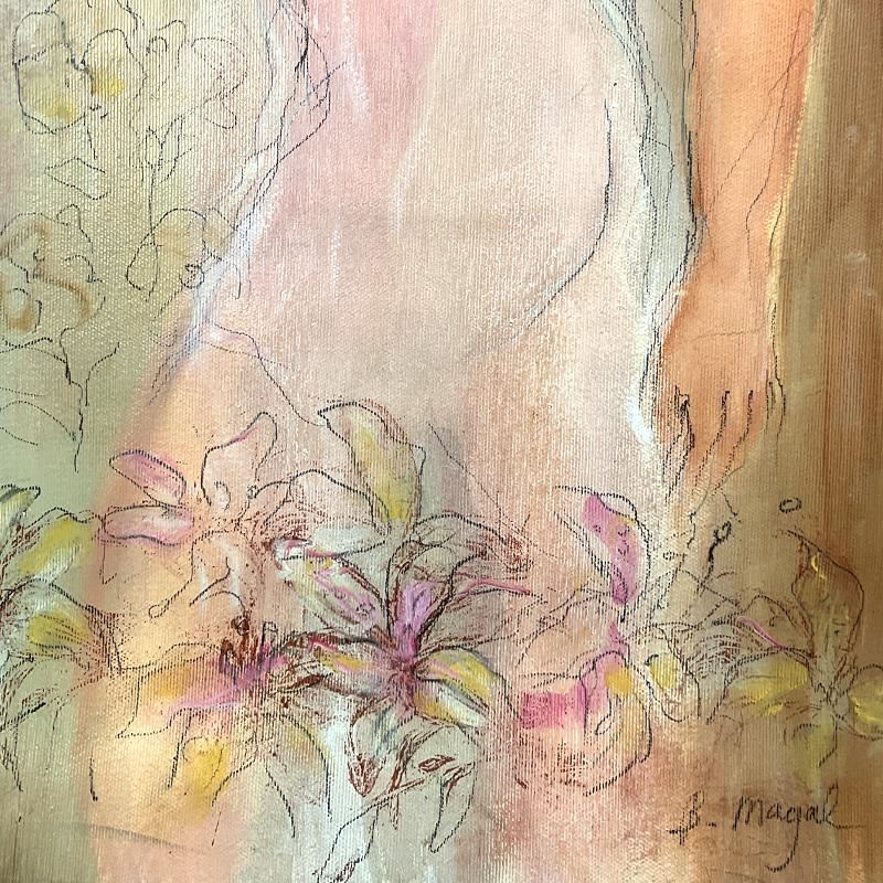 This is an original acrylic painting on canvas by Batia Magal, hand signed by the artist. Includes Letter of Authenticity. Measures approx. 30" x 16" (image).