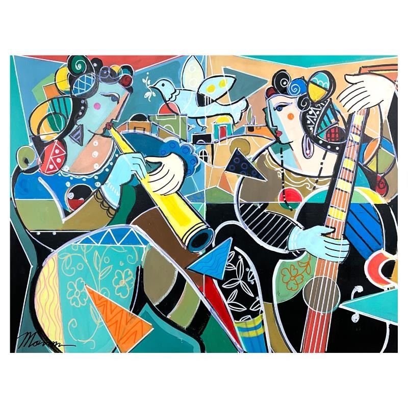 This is an original acrylic painting on canvas by Isaac Maimon, hand signed by the artist. Includes Letter of Authenticity. Measures approx. 40" x 30" (image).