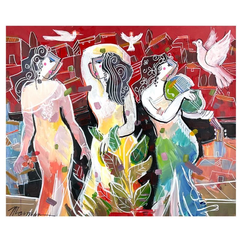 This is an original acrylic painting on canvas by Isaac Maimon, hand signed by the artist. Includes Letter of Authenticity. Measures approx. 30" x 24" (image).