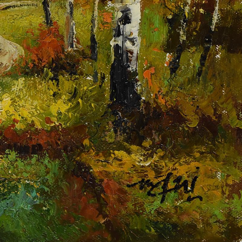 This is an original oil painting on canvas by Mani, hand signed by the artist. Includes Letter of Authenticity. Measures approx. 50" x 26" (image).