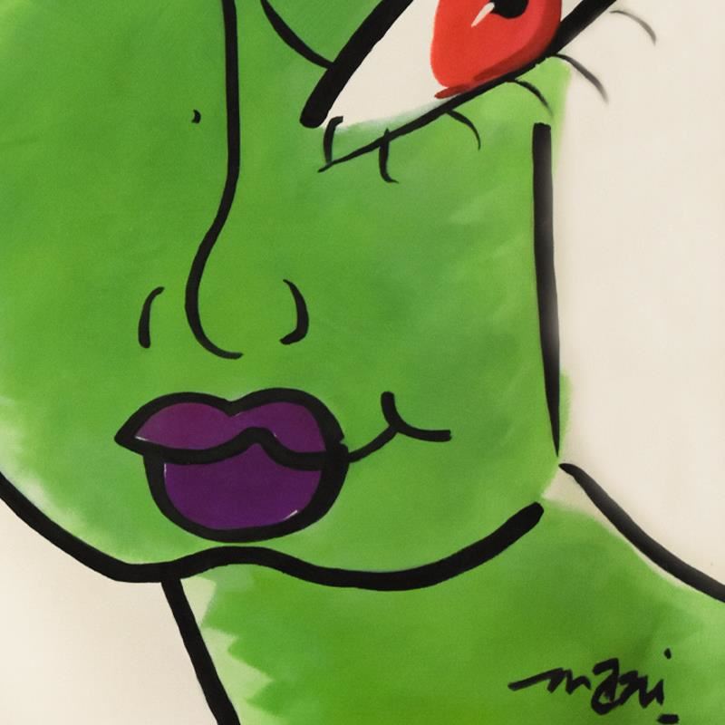 Untitled by Mani Original. Please see photos and description for all available information. This is an original acrylic painting on canvas by Mani, hand signed by the artist. Includes Letter of Authenticity. Measures approx. 24" x 36" (image). Please note: Due to the nature of the canvas there may be minor creases that may be concealed when the piece is framed.