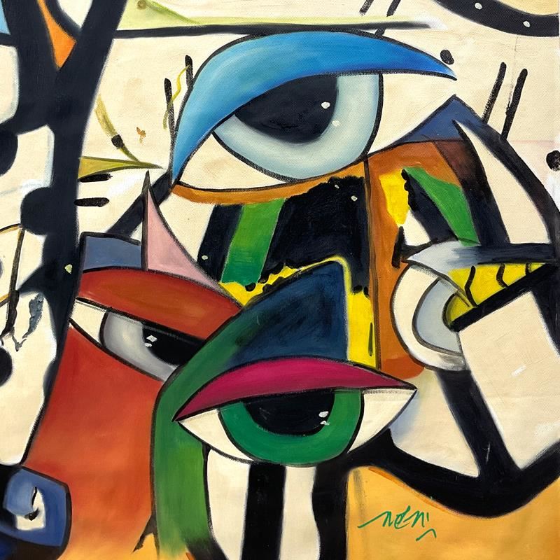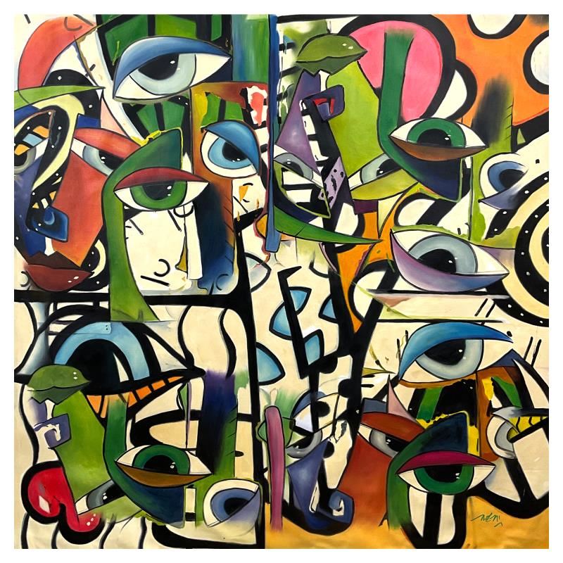 This is an original oil painting on canvas by Mani, hand signed by the artist. Includes Letter of Authenticity. Measures approx. 60" x 60" (image).