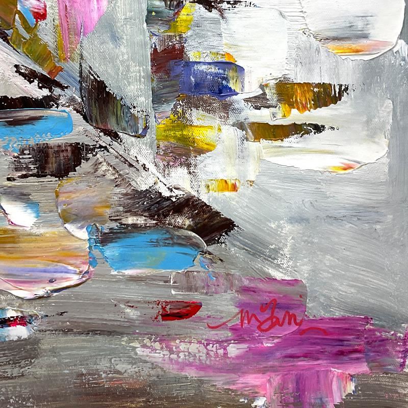 This is an original oil painting on canvas by Mani, hand signed by the artist. Includes Letter of Authenticity. Measures approx. 36" x 36" (image).