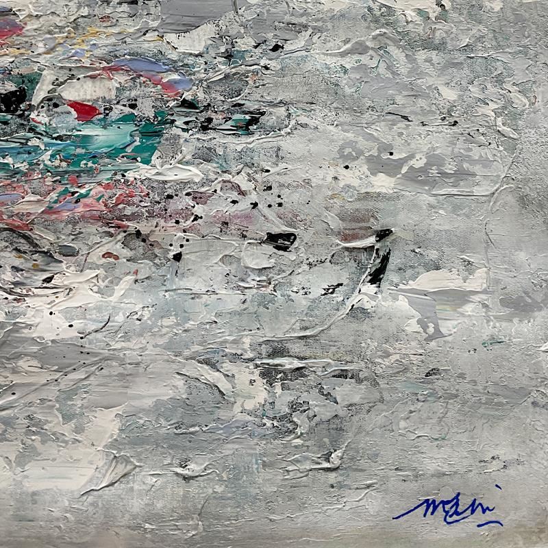 This is an original oil painting on canvas by Mani, hand signed by the artist. Includes Letter of Authenticity. Measures approx. 44" x 44" (image).