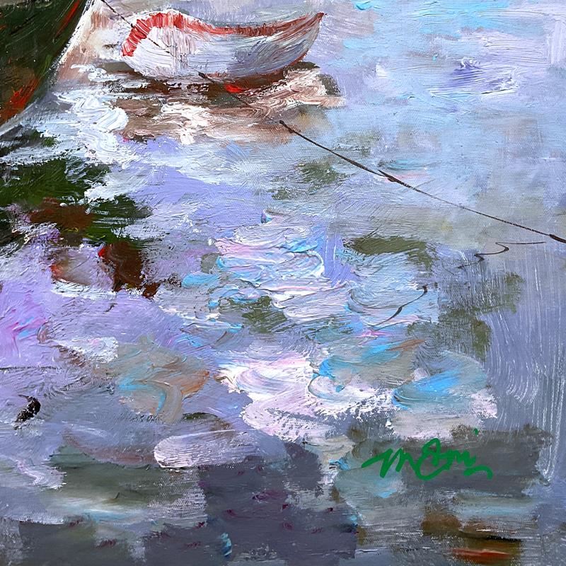 This is an original oil painting on canvas by Mani, hand signed by the artist. Includes Letter of Authenticity. Measures approx. 26" x 50" (image).