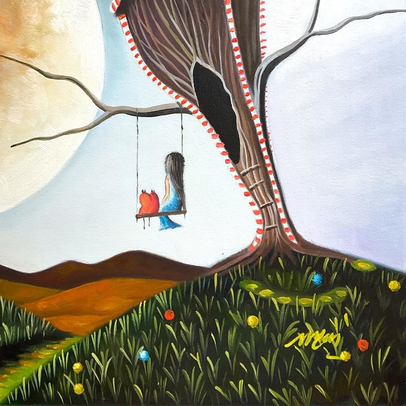 This is an original oil painting on canvas by Mani, hand signed by the artist. Includes Letter of Authenticity. Measures approx. 22" x 26" (image).