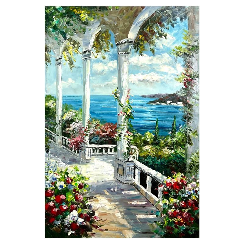 This is an original acrylic painting on canvas by Mani, hand signed by the artist. Includes Letter of Authenticity. Measures approx. 24" x 36" (image).