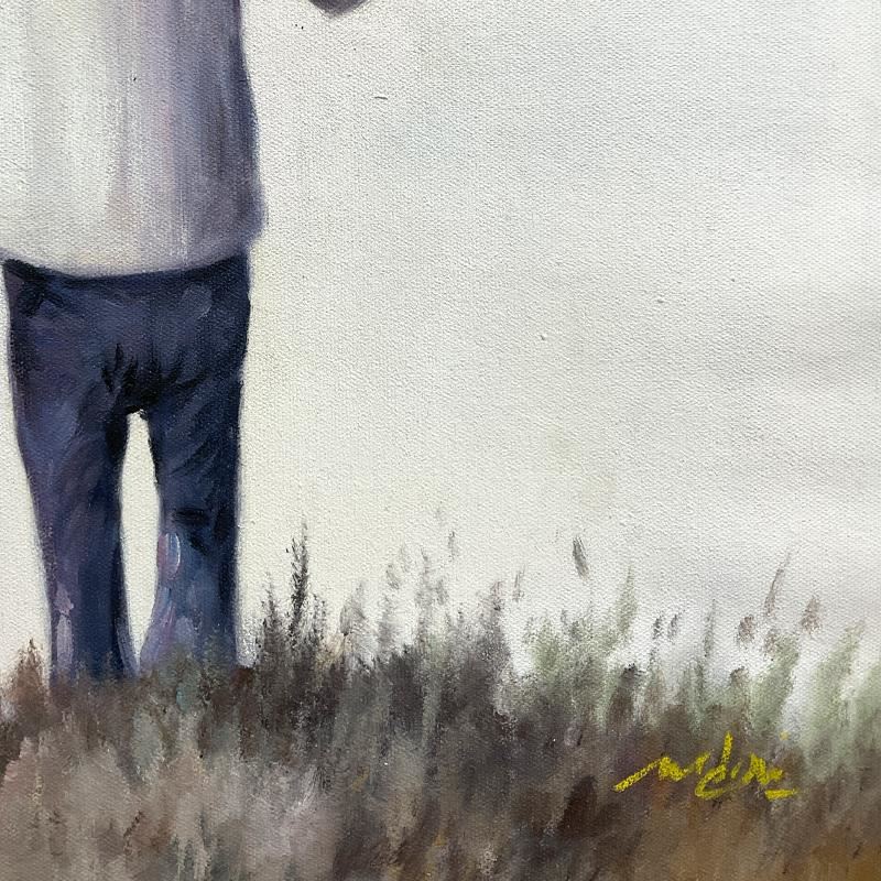 This is an original acrylic painting on canvas by Mani, hand signed by the artist. Includes Letter of Authenticity. Measures approx. 20" x 20" (image).
