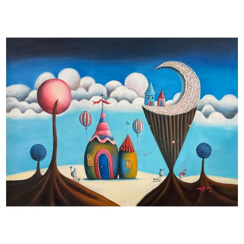 This is an original acrylic painting on canvas by Mani, hand signed by the artist. Includes Letter of Authenticity. Measures approx. 24" x 36" (image).