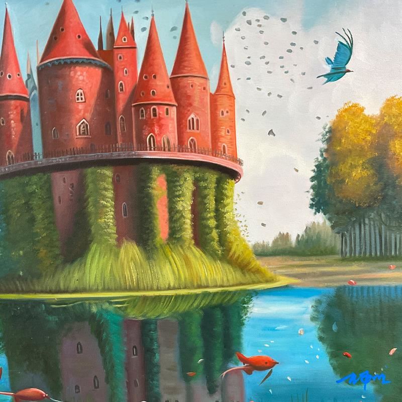 This is an original acrylic painting on canvas by Mani, hand signed by the artist. Includes Letter of Authenticity. Measures approx. 20" x 30" (image).