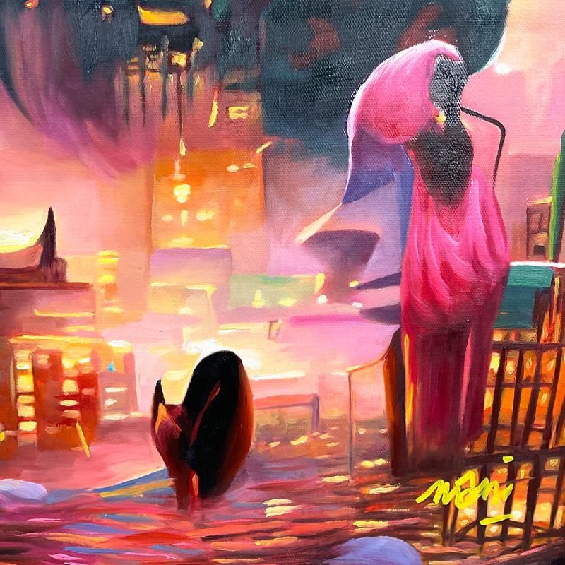 This is an original acrylic painting on canvas by Mani, hand signed by the artist. Includes Letter of Authenticity. Measures approx. 16" x 24" (image).