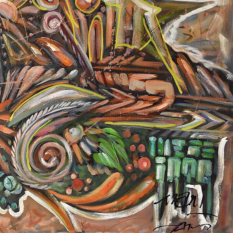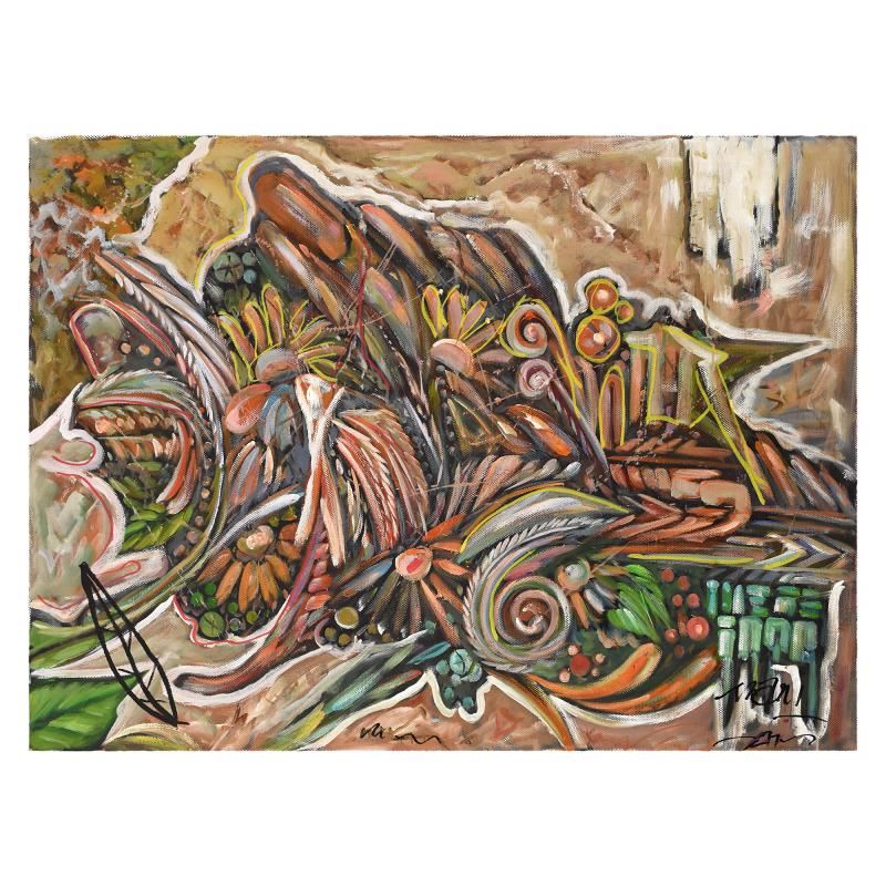 This is an original acrylic painting on canvas by Mani, hand signed by the artist. Includes Letter of Authenticity. Measures approx. 48" x 36" (image).