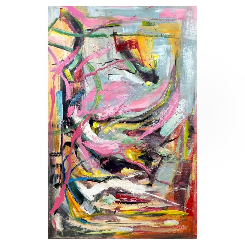 This is an original acrylic painting on canvas by Mani, hand signed by the artist. Includes Letter of Authenticity. Measures approx. 60" x 40" (image).