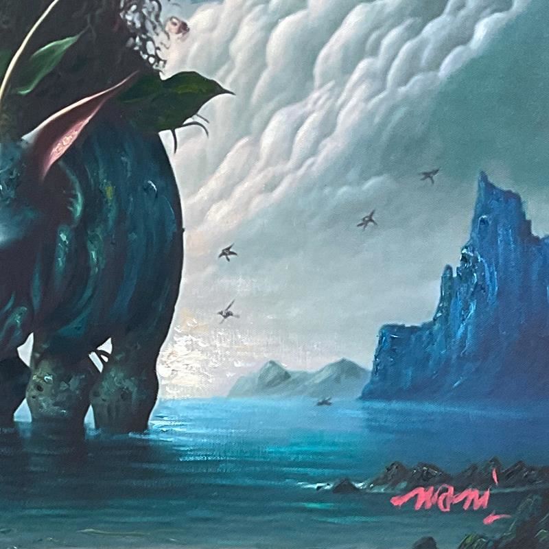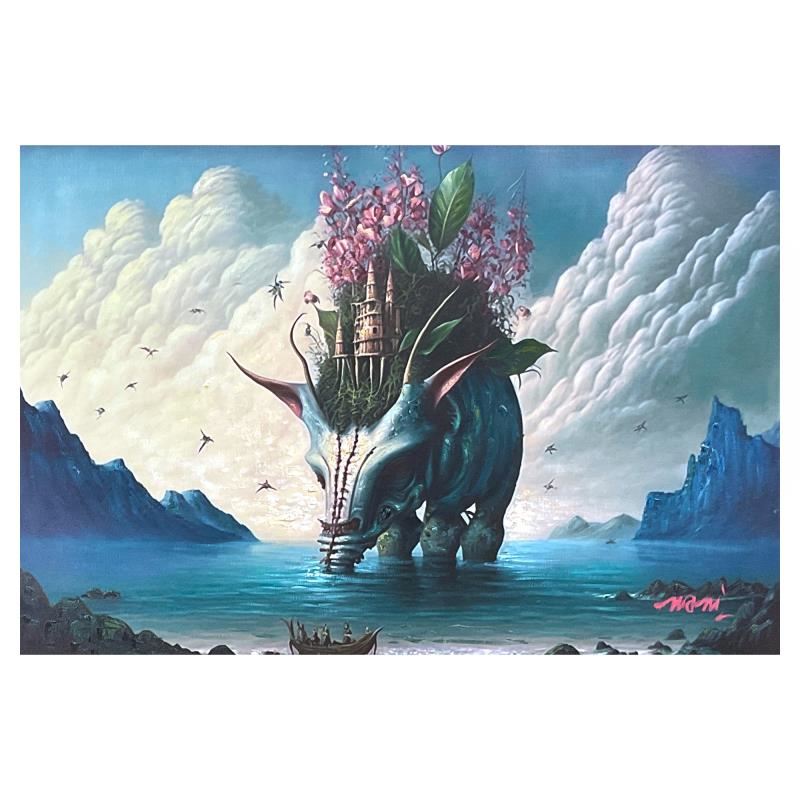 This is an original acrylic painting on canvas by Mani, hand signed by the artist. Includes Letter of Authenticity. Measures approx. 20" x 30" (image).