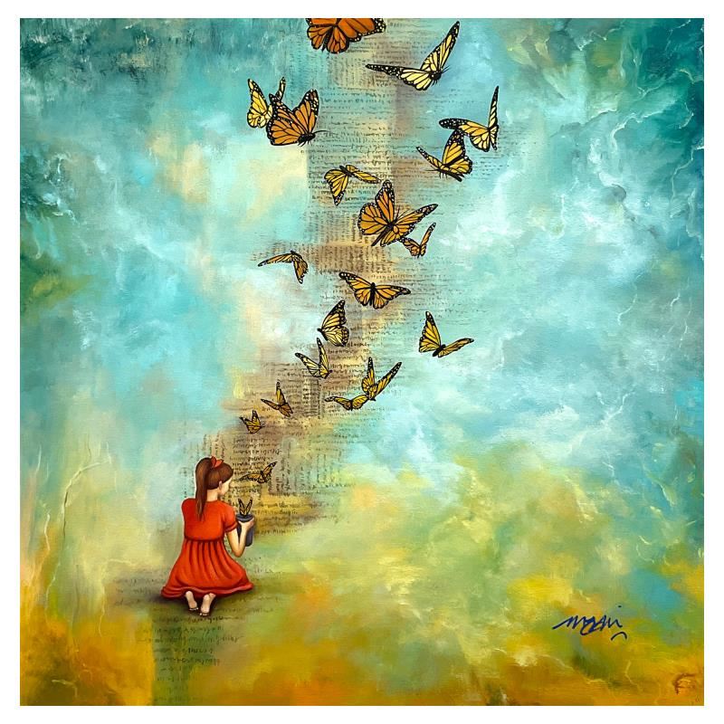 This is an original acrylic painting on canvas by Mani, hand signed by the artist. Includes Letter of Authenticity. Measures approx. 24" x 24" (image).