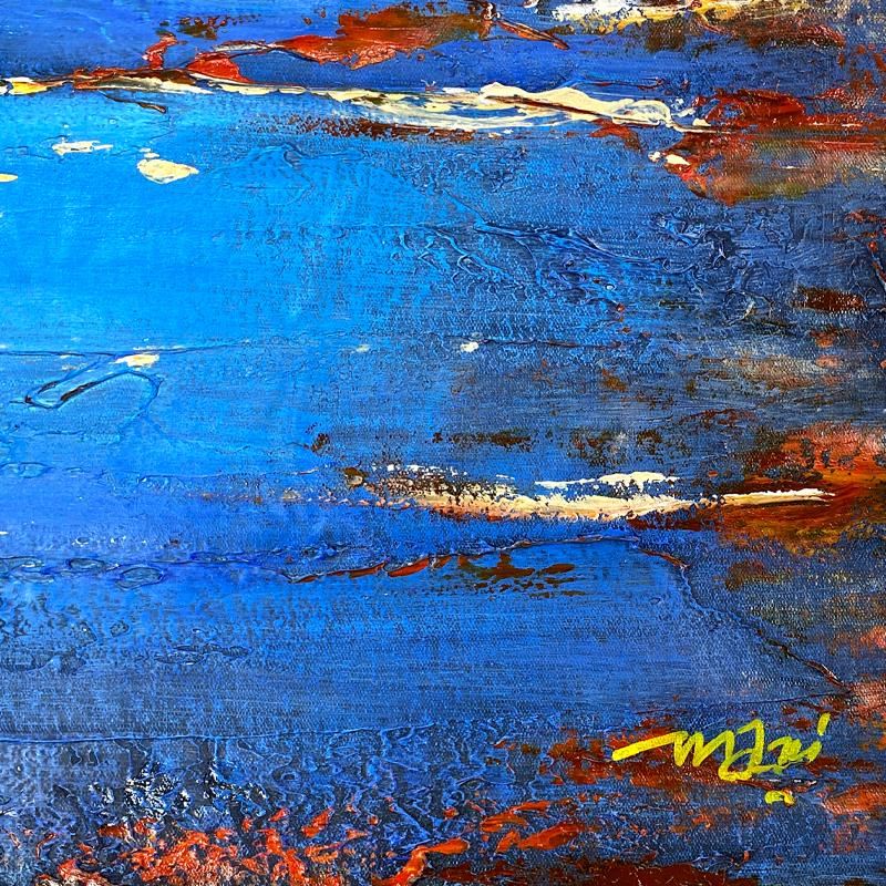 This is an original acrylic painting on canvas by Mani, hand signed by the artist. Includes Letter of Authenticity. Measures approx. 36" x 36" (image).