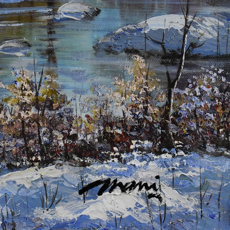 This is an original acrylic painting on canvas by Mani, hand signed by the artist. Includes Letter of Authenticity. Measures approx. 46" x 46" (image).