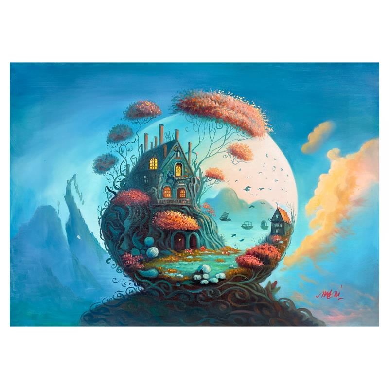 This is an original acrylic painting on canvas by Mani, hand signed by the artist. Includes Letter of Authenticity. Measures approx. 24" x 36" (image).