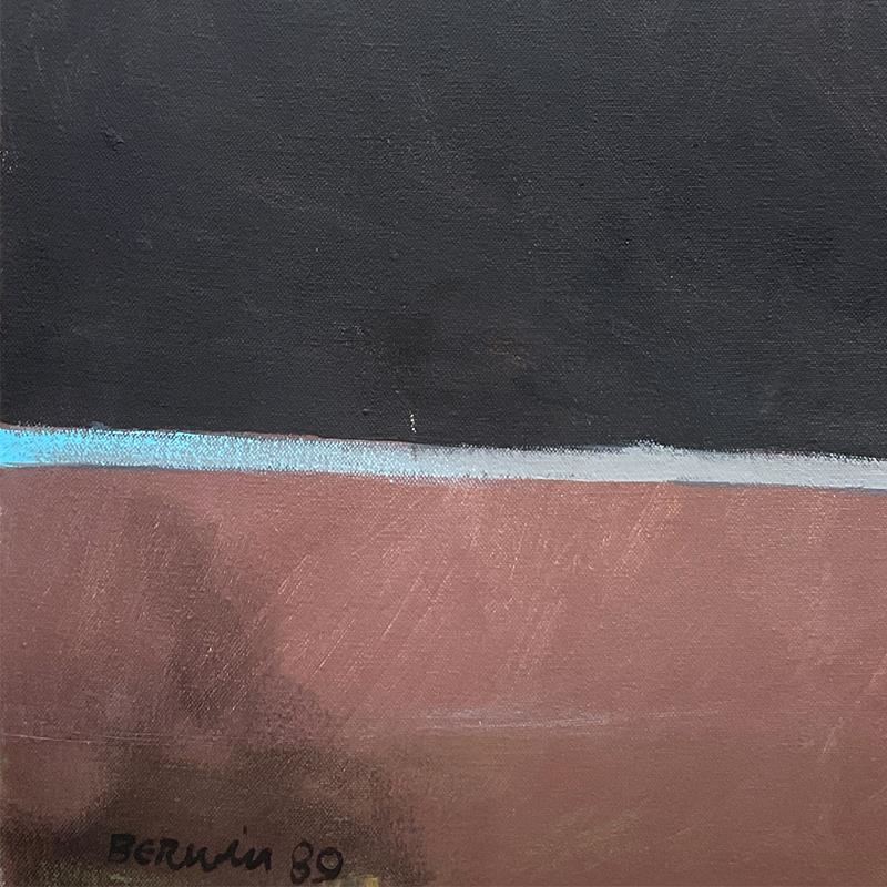 This is an original painting on stretched canvas by Milton Berwin (1925-2023), dated 27.5 and hand signed by the artist. Includes Letter of Authenticity. Measures approx. 40" x 30" (image). Due to the age of this piece there are some minor imperfections on the canvas.