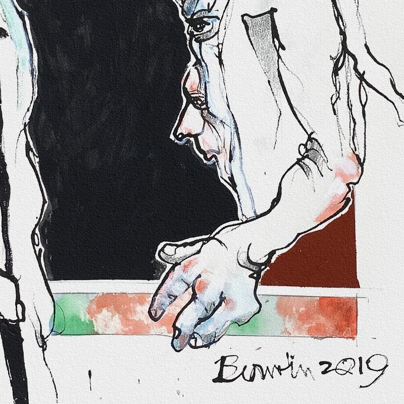 This is an original painting on paper by Milton Berwin (1925-2023), hand signed by the artist. Includes Letter of Authenticity. Measures approx. 30" x 22" (image).