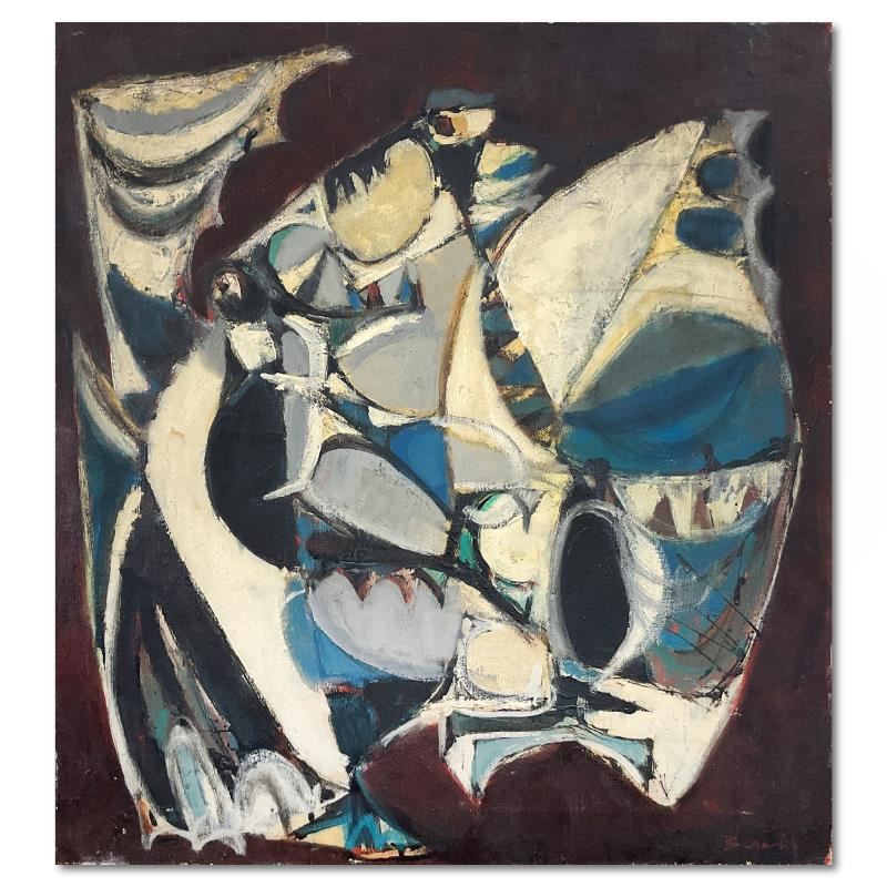 This is an original painting on stretched canvas by Milton Berwin (1925-2023), hand signed by the artist. Includes Letter of Authenticity. Measures approx. 22" x 20" (image).