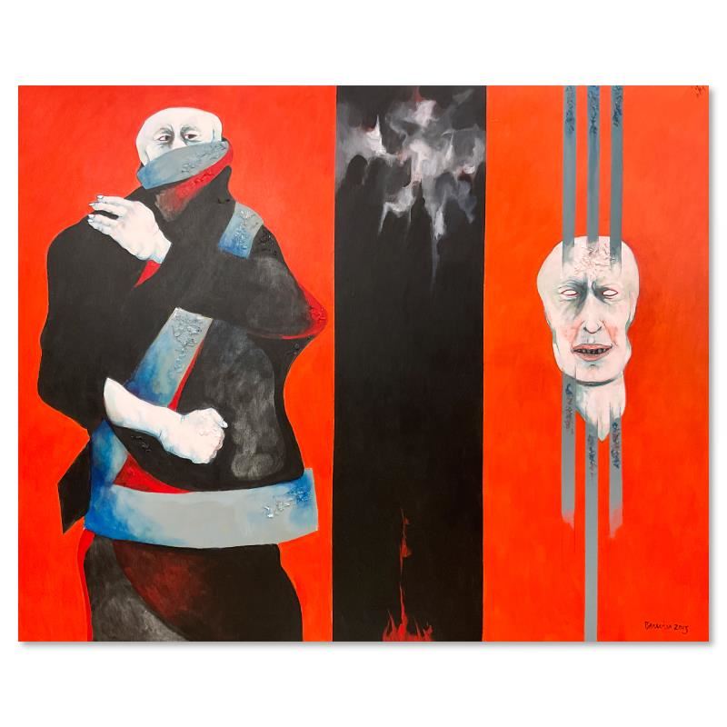 This is an original painting on stretched canvas by Milton Berwin (1925-2023), hand signed by the artist. Includes Letter of Authenticity. Measures approx. 48" x 60" (image).