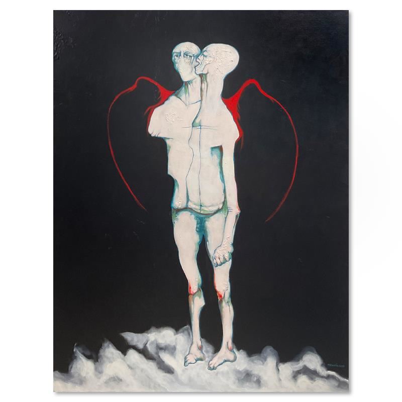 This is an original painting on stretched canvas by Milton Berwin (1925-2023), hand signed by the artist. Includes Letter of Authenticity. Measures approx. 62" x 48" (image).