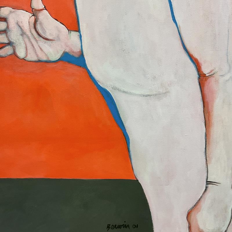 This is an original painting on stretched canvas by Milton Berwin (1925-2023), hand signed by the artist. Includes Letter of Authenticity. Measures approx. 66" x 52" (image). There are some minor chipping along the edges of the canvas that may be concealed when the piece is framed.