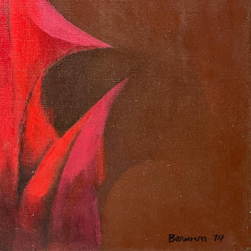 This is an original painting on stretched canvas by Milton Berwin (1925-2023), dated 1974 and hand signed by the artist. Includes Letter of Authenticity. Measures approx. 45" x 30" (image).