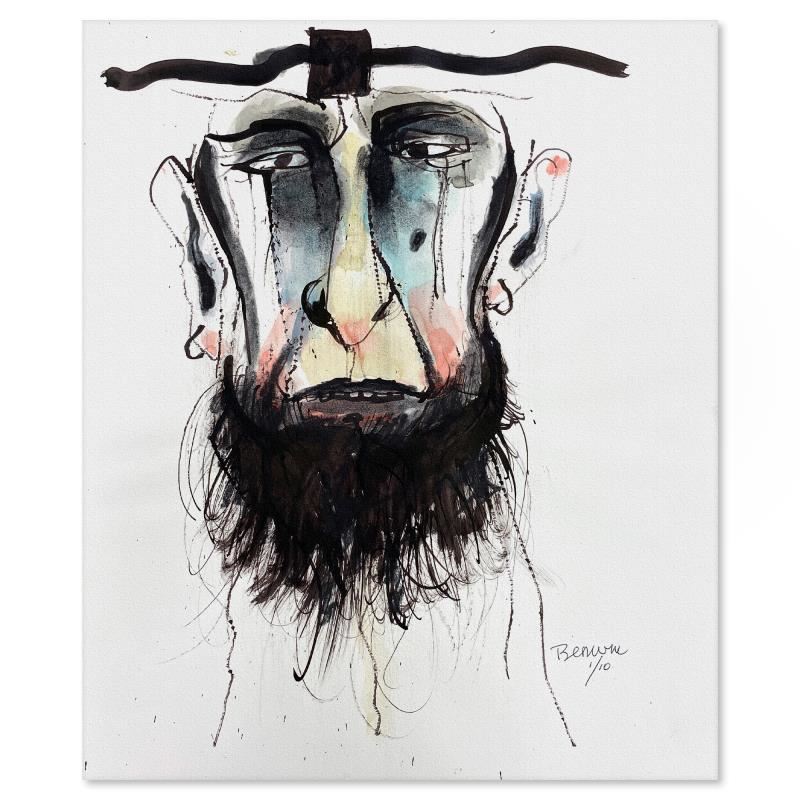This is an original painting on paper by Milton Berwin (1925-2023), hand signed by the artist. Includes Letter of Authenticity. Measures approx. 16.5" x 14" (image). There is a very small tear on the left edge of the paper.