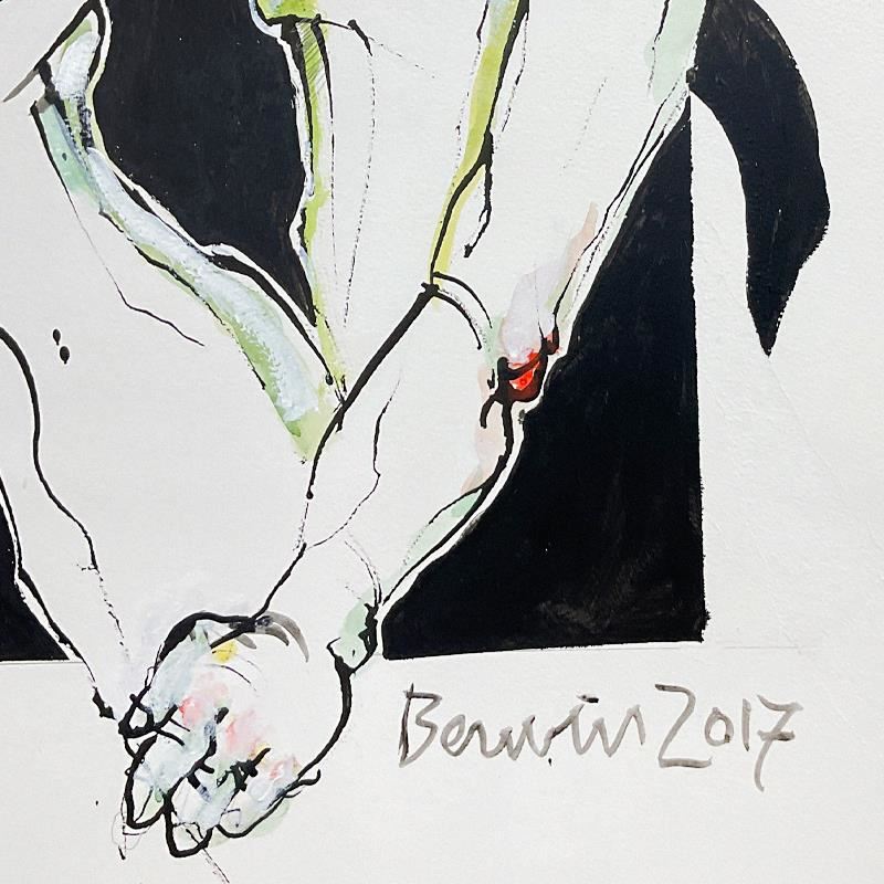 This is an original painting on paper by Milton Berwin (1925-2023), hand signed by the artist. Includes Letter of Authenticity. Measures approx. 30" x 22.5" (image). There is a small patch on the lower-right white border area where the top layer of the paper has been peeled off (likely from tape being pulled off).