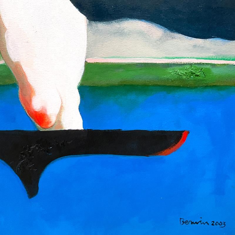 This is an original painting on stretched canvas by Milton Berwin (1925-2023), dated 2003 and hand signed by the artist. Includes Letter of Authenticity. Measures approx. 52" x 66" (image). Local pickup from our warehouse is available on this item.