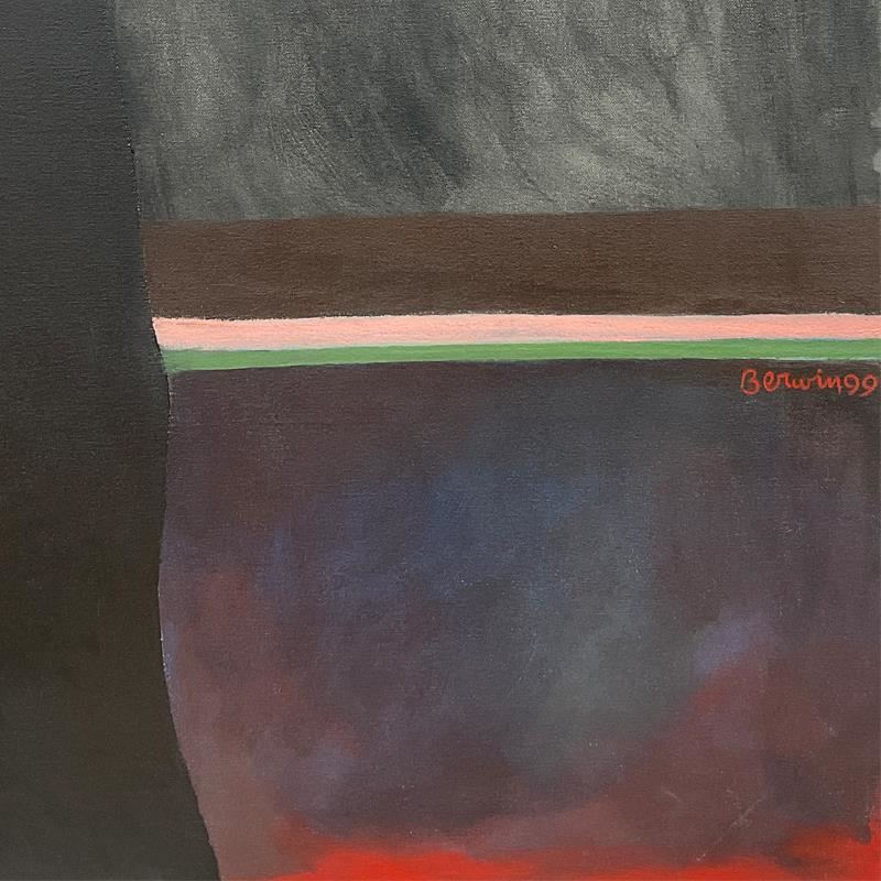 This is an original painting on stretched canvas by Milton Berwin (1925-2023), dated 1999 and hand signed by the artist. Includes Letter of Authenticity. Measures approx. 66" x 52" (image). There are a couple of very small faint scuffs on the canvas that are only noticeable upon close inspection.