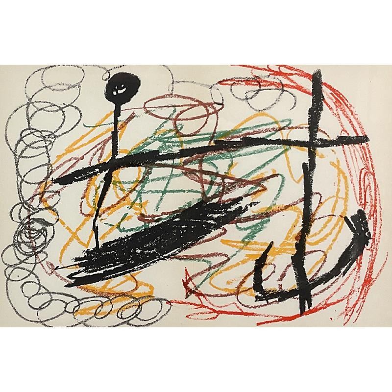 This is a lithograph on paper by Joan Miro (1893-1983). This piece comes custom framed. Includes Letter of Authenticity. This lithograph originally came in a book and was folded so there is as slight crease in the center. All examples of this lithograph a