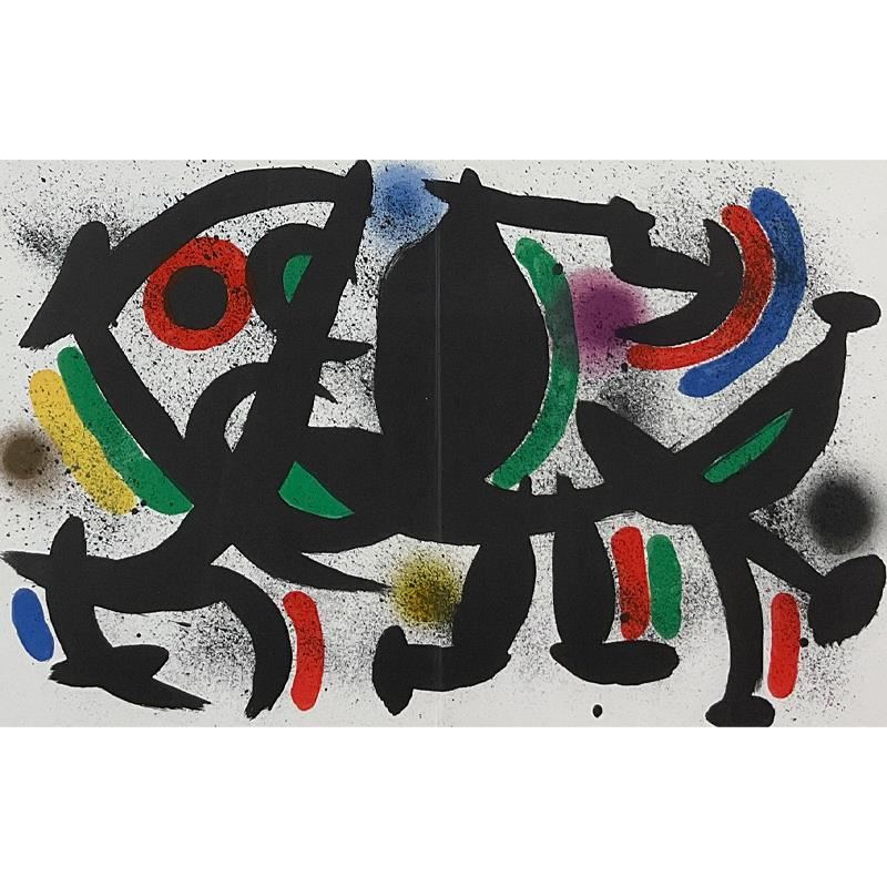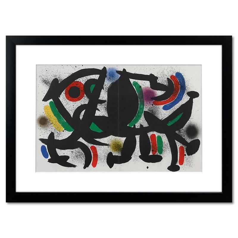 This is a lithograph on paper by Joan Miro (1893-1983). This piece comes custom framed. Includes Letter of Authenticity. This lithograph originally came in a book and was folded so there is as slight crease in the center. All examples of this lithograph are this way and it is not a flaw. Measures approx. 26" x 19" (frame), 19" x 12" (image).