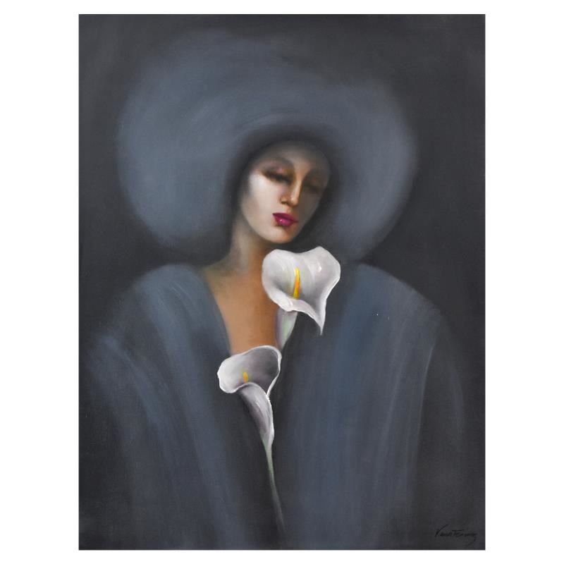 Untitled by Montesinos Original. Please see photos and description for all available information. This is an original oil painting on canvas by Victoria Montesinos, hand signed by the artist. This piece comes with Letter of Authenticity. Measures approx. 30" x 40" (image).