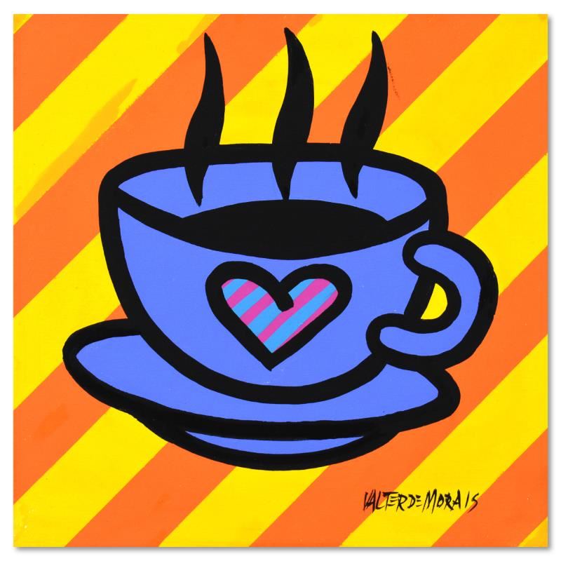 This is an original acrylic painting on stretched canvas by Valter Morais, hand signed by the artist. Includes Letter of Authenticity. Measures approx. 12" x 12" (image). ** Please note: the canvas is torn on the top-right side panel; this imperfection will be concealed when the piece is framed. There is also a faint brush line adjacent to the far left steam line (see photo). **