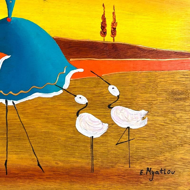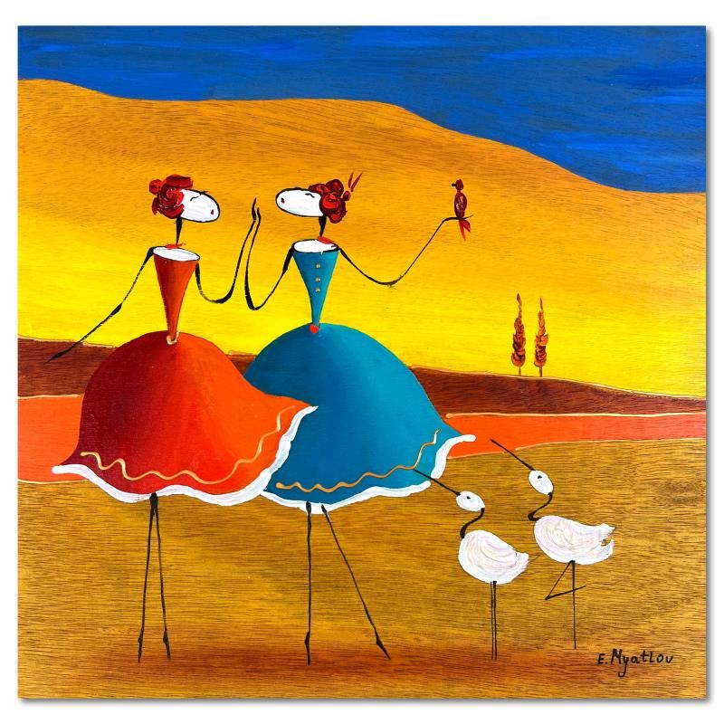 This is an original painting oil on wood panel by Ester Myatlov. Hand signed by the artist, this piece comes with a letter of authenticity. Measures approximately 10" x 10" (image).