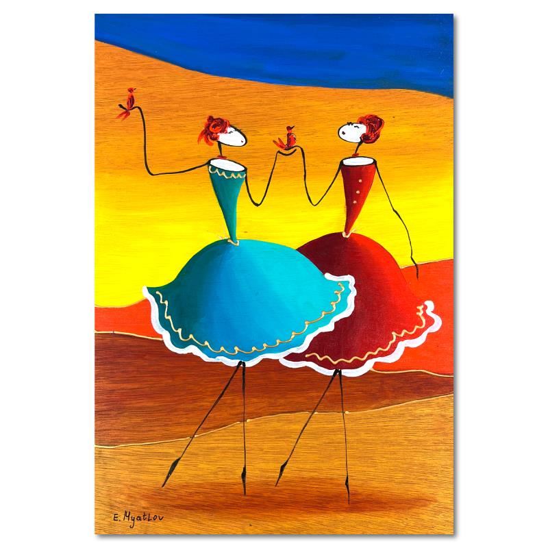 This is an original painting oil on wood panel by Ester Myatlov. Hand signed by the artist, this piece comes with a letter of authenticity. Measures approximately 12" x 8" (image).