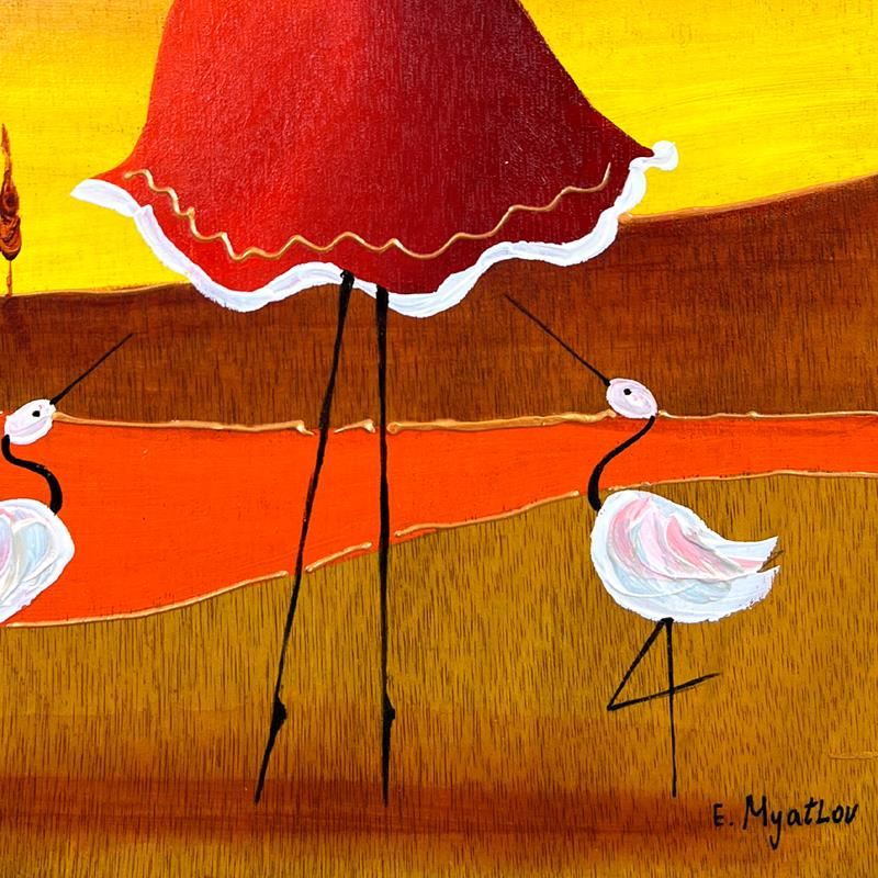This is an original painting oil on wood panel by Ester Myatlov. Hand signed by the artist, this piece comes with a letter of authenticity. Measures approximately 12" x 8" (image).